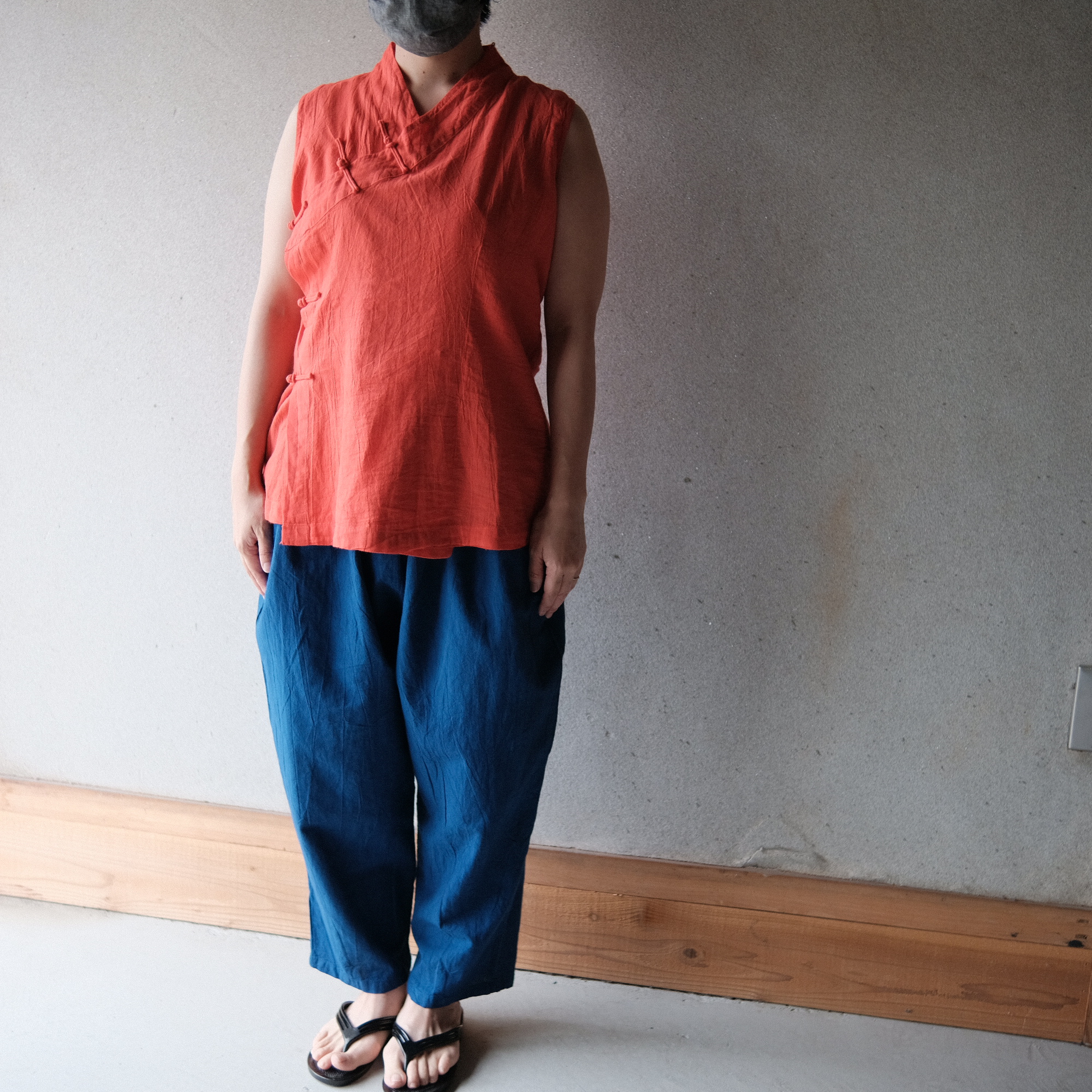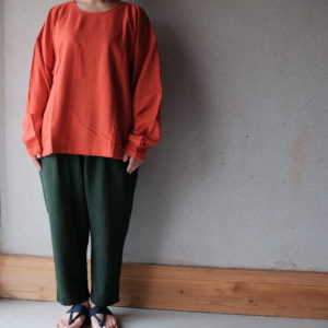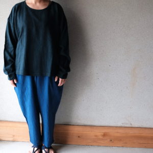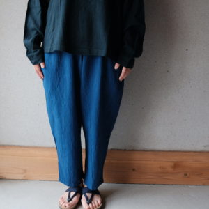 手染めなので徐々に風合いが出て着ます、デニムのように色が馴染む点もお楽しみください。