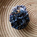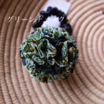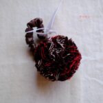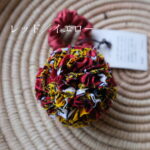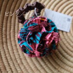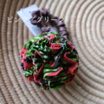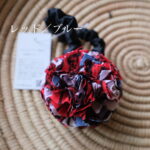 ボンボン部分はリボンに裂いた布を絞ってボール状にしているのでパーニュ生地単体とはまた違った雰囲気。