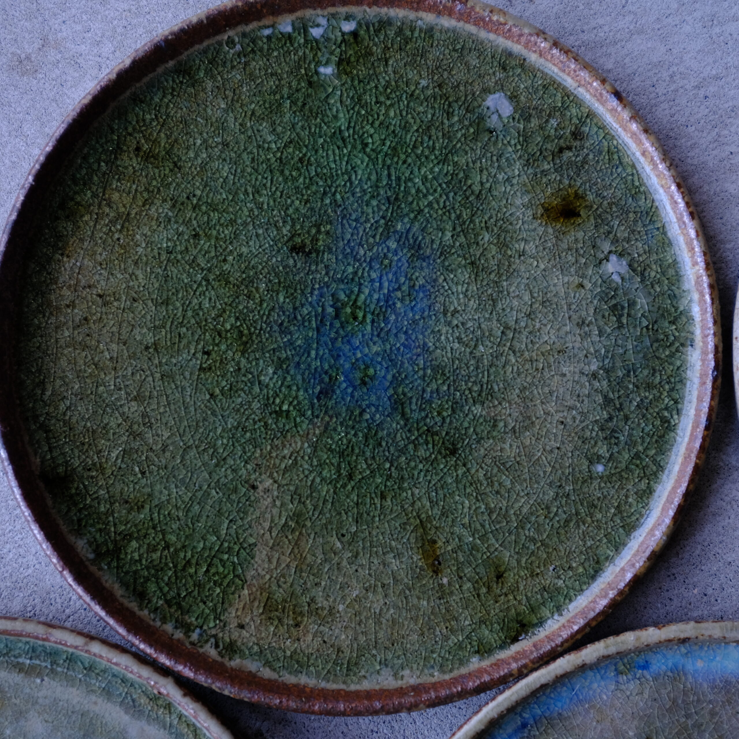 同じ土に同じ釉薬ですが焼成時の火の当たり具合により釉薬の出方が全く違います。